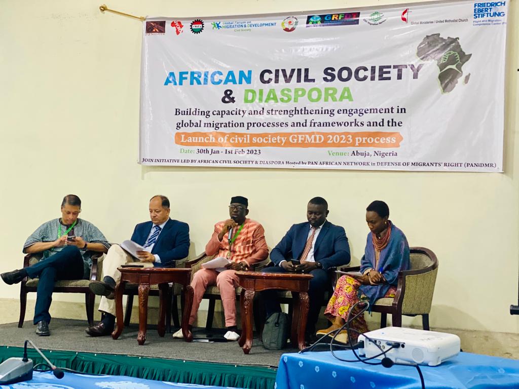 The Abuja Civil Society Forum was a joint initiative led by African civil society and diaspora networks (AFFORD, ECDPM, GRFDT, ITUC-Africa, PANiDMR), with the support of the GFMD Civil Society Mechanism secretariat. It was hosted by the Pan-African Network in Defense of Migrant’s Rights (PANiDMR) and its member, the Civil Society Network on Migration and Development, Nigeria (CSOnetMADE). As longtime members of the GFMD Civil Society Mechanism’s International Steering Committee (ISC), AFFORD and PANiDMR in particular have ensured equitable representation and active engagement of African civil society and African diaspora within the GFMD process over the years, and built on that strong foundation to enhance their joint engagement in this year’s GFMD process.